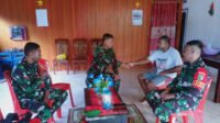 Danramil 1710-02/Timika Kapten Inf Akhmad Zaini mengucapkan selamat kepada warga saat melakukan Komsos dengan mendatangi rumak warga. Foti Puspen TNI.