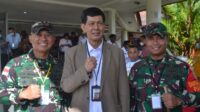 Ketua Umum PPAD Letjen TNI (Purn) Doni Monardo diapit Dandim 1710/Mimika Letkol Inf Dedy Dwi Cahyadi (kanan) serta Danrem 174/ATW Brigjen TNI Agus Widodo. Foto: Kodim 1710/Mimika.
