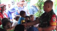 Seorang Babinsa melayani warga yang datang untuk memeriksa kesehatannya maupun menerima Bansos. Foto: Kodim 1710/Mimika.