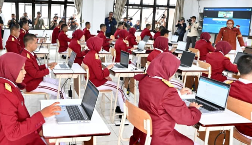 “Kalau tidak mengerti tanya guru ya, jangan malu bertanya, di sini tempat kamu bertanya,” ujar Presiden.